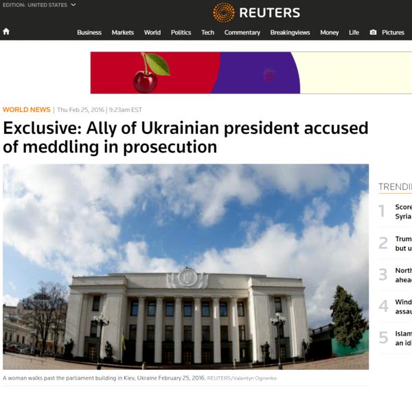 В интервью изданию Reuters бывший заместитель генпрокурора Виталий Касько заявил, что генпрокурор Виктор Шокин поручал ему выполнять инструкции замглавы фракции БПП Кононенко.