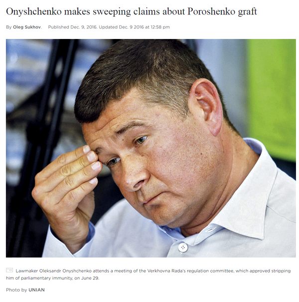 В конце 2016 года Украину взбудоражил скандал с беглым нардепом Александром Онищенко. Он утверждает, что приближенный к президенту Порошенко Кононенко получает $20 с каждой тонны угля, поставляемого из оккупированного Донбасса. Об этом он сообщил KyivPost.