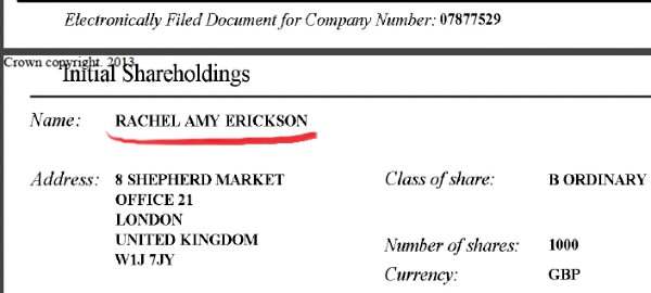 Вот по этой компании ситуация более интересная. Несколько кликов мышкой - и у нас на руках уставные документы этой британской фирмы. Директором и владельцем 100% акций Balmore Invest Limited является некая гражданка Новой Зеландии Рейчел Эми Эриксон (Rachel Amy Erickson).