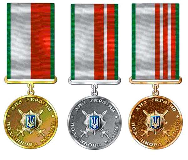 Кроме того, Минюст приказом от 05.03.2012 г. № 369/5 утвердил ведомственные награды Государственной пенитенциарной службы Украины: нагрудный знак «Почетный работник Государственной уголовно-исполнительной службы Украины»; нагрудный знак «За отличие в службе»; нагрудный знак «Отличник службы» I и II степеней; Почетную грамоту Государственной пенитенциарной службы Украины. Рисунков, к сожалению, нет.