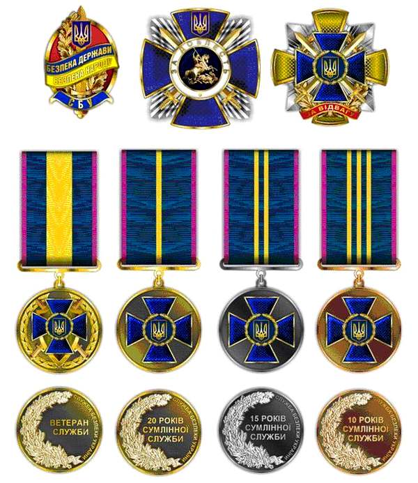 Если сравнивать со старой «нормативкой» СБУ, то практическую всю свою наградную систему они «перерыли». Так, ушли в небытие следующие ведомственные отличия Службы: нагрудный знак «Почетный звезда Службы безопасности Украины», нагрудный знак «Почетный знак Службы безопасности Украины», медаль «За мужество и отвагу», награда «Холодное оружие», нагрудный знак «Крест Доблести» I, II степени, нагрудный знак «За борьбу с коррупцией и организованной преступностью», нагрудный знак «Награда Департамента контрразведки Службы безопасности Украины», нагрудный знак «За личные заслуги в оперативно-розыскной деятельности», нагрудный знак «Награда Инспекторского управления Службы безопасности Украины», нагрудный знак «За заслуги в борьбе с терроризмом», нагрудный знак «Почетный знак Антитеррористического центра при Службе безопасности Украины», нагрудный знак «Награда Управления внутренней безопасности Службы безопасности Украины», нагрудный знак «Почетный знак Департамента оперативно-технических мероприятий Службы безопасности Украина», нагрудный знак «Крест Почета», медаль «Ветеран органов безопасности» и медаль «За отличие в службе» I, II, III степени.