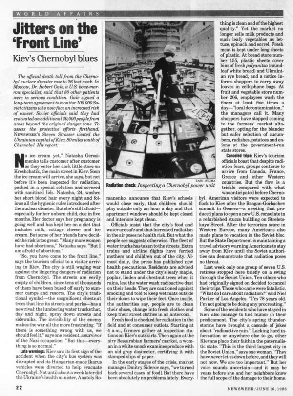 Стаття Стівена Страссера «Jitters on the Front Line» у журналі Newsweek від 16 червня 1986 року